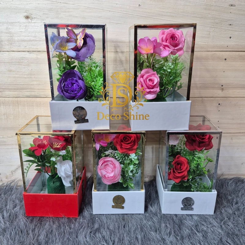 باکس گل شیشه سه گل پرکار(پسکرایه)