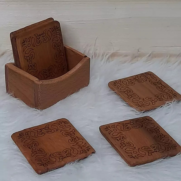 زیرلیوان 6تایی چوبی درجه یک باحکاکی لیزری(پس کرایه)