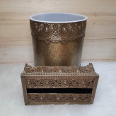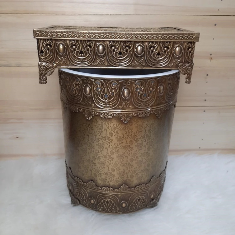ست سطل و جادستمالی آنتیک جنس فلزی آبکاری شده حکاکی شده و خوش نقش رنگ ثابت قابل شستشو دارای سطل پلاستیکی و جدا شونده برای تمیزی و تخلیه آشغال بدون دستکاری وسشتشوی راحت سایر مدلهای سطل و جادستمال داخل غرفه دکوشاین موجوداست درصورت نیاز بازدید نمایید ارسال سریع بابهترین بسته بندی