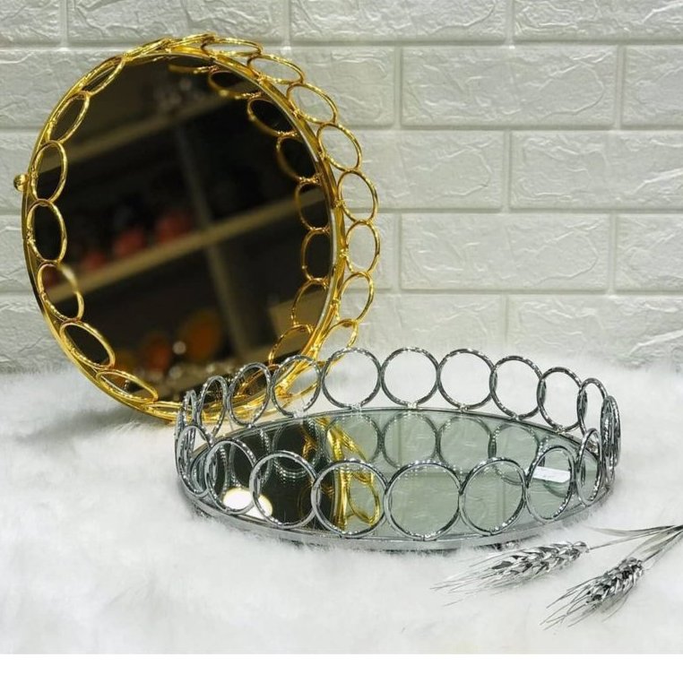 سینی گرد طرح المپیک سایز ۳۰ سانت کف آینه درجه یک آبکاری فونتیک دارای دورنگ سیلور و طلایی