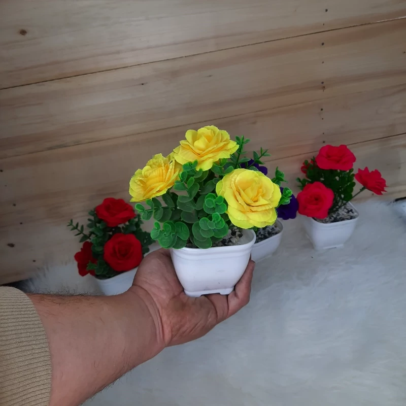 گل و گلدان رز مینیاتوری جنس پلاستیک و پارچه قابل شستشو رنگ ثابت دارای رنگ بندی طبق تصویر ارسال سریع با بهترین بستهبندی