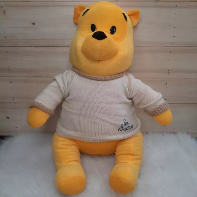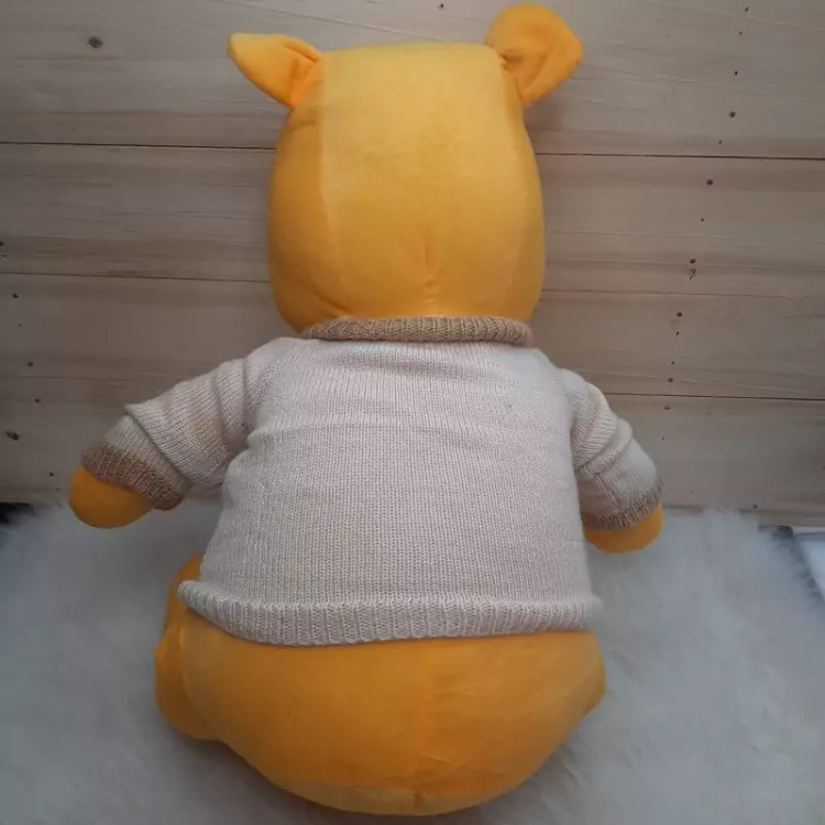 عروسک خرس پو لباس کاموایی درجه یک قابل شستشو با لباسشویی و دست دوخت منظم و با کیفیت بالا رنگ ثابت بدون پرزدهی سایز60سانت سایر مدلهای عروسک داخل غرفه موجود است در صورت نیاز بازدید نمایید ارسال سریع با بهترین بستهبندی