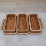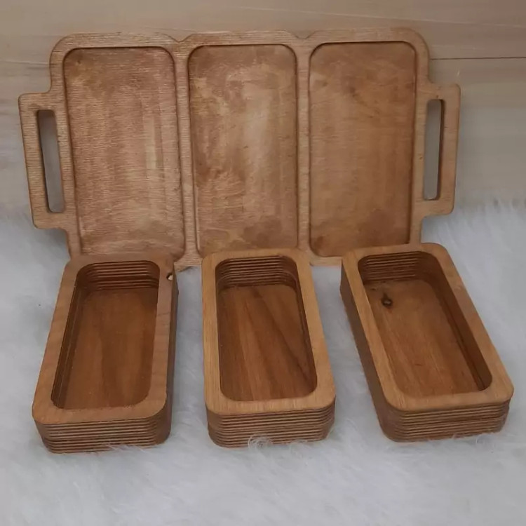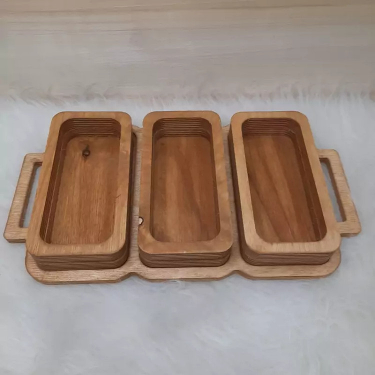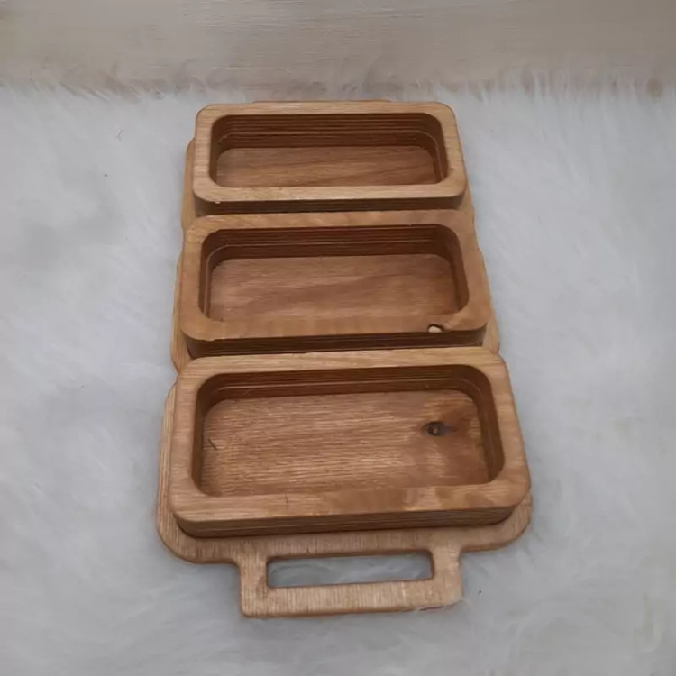 اردوخوری چوبی سه خانه طرح مستطیل جنس چوب پلای وود سینیدار کاملاً ضد آب قابل شستشو روغن کاری شده با روغن خوراکی ابعاد 33/19 سایر طرحهای اردوخوری داخل غرفه دکوشاین موجود است در صورت نیاز بازدید نمایید ارسال سریع با بهترین بستهبندی