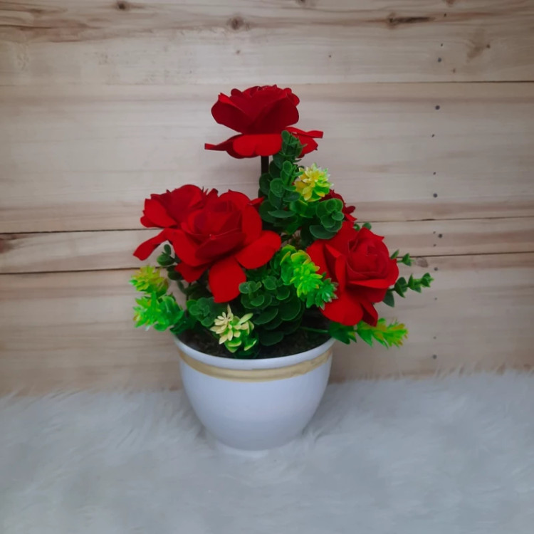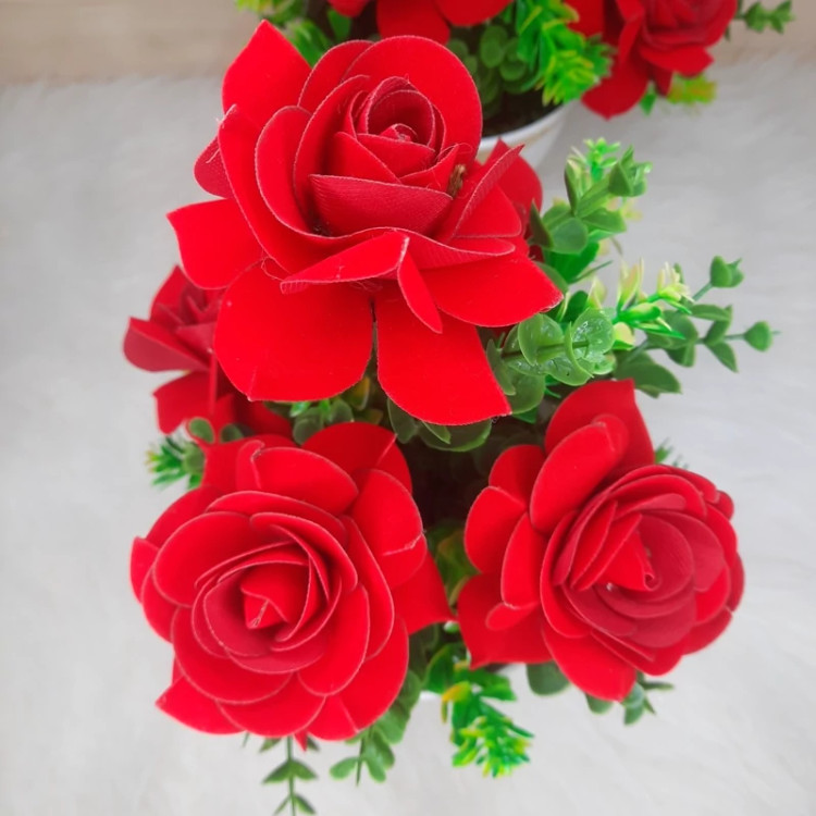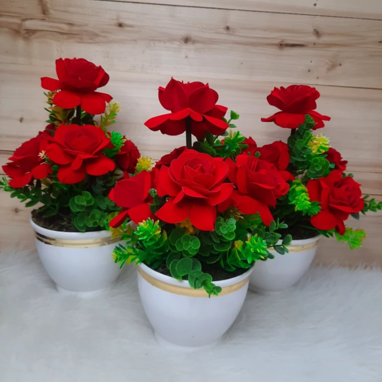 گل و گلدان رز مخملی پنج گل مصنوعی (پس کرایه)
