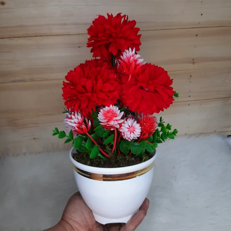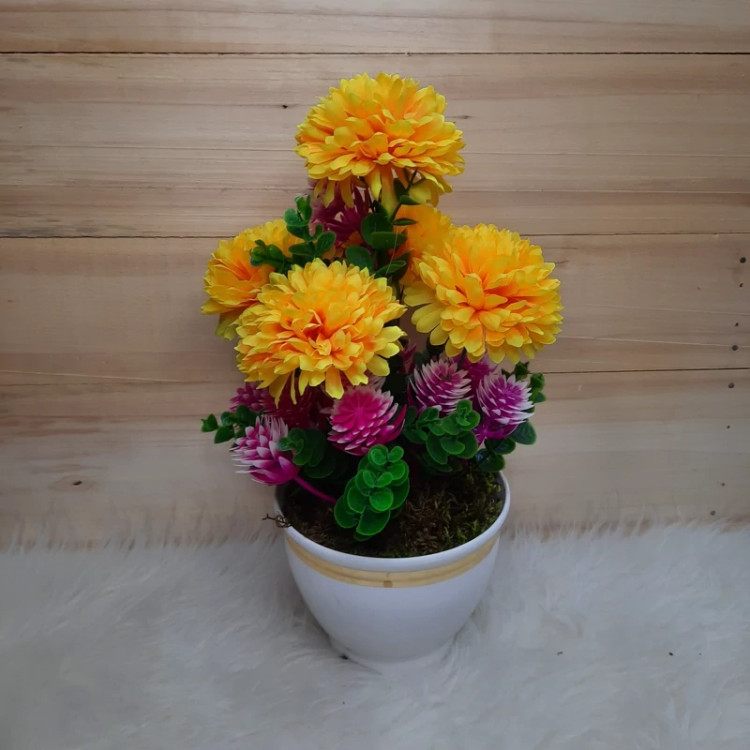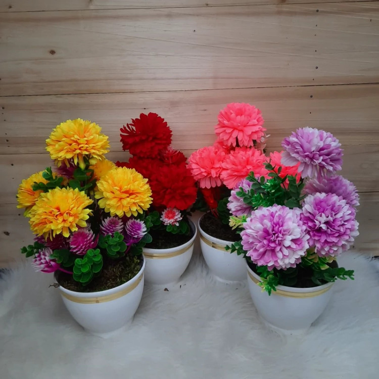 گل و گلدان داودی مصنوعی پنج گل(پس کرایه)
