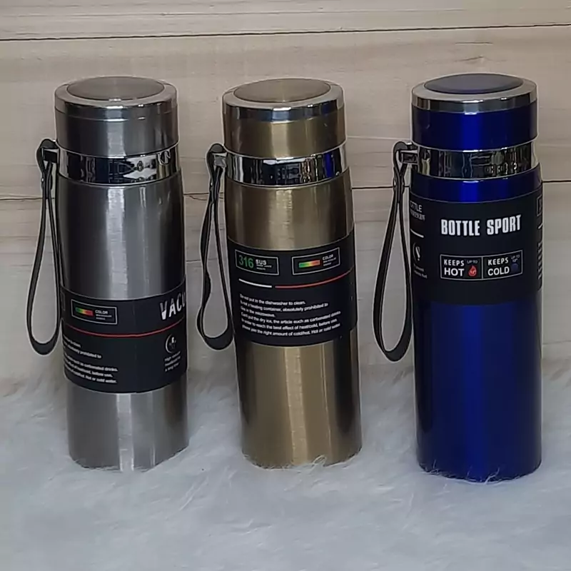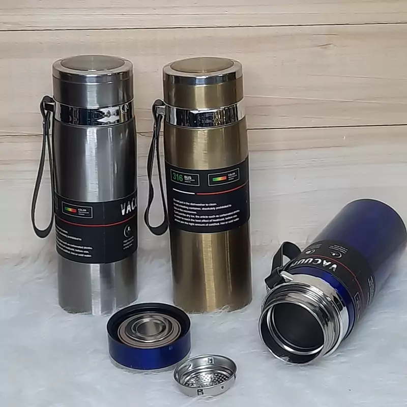 فلاکس 800 سی سی وارداتی درجه یک قابلیت نگهداری 8 ساعته نوشیدنی گرم دارای تفاله گیر و بند چرمی داخل استیل رنگبندی طبق تصویر