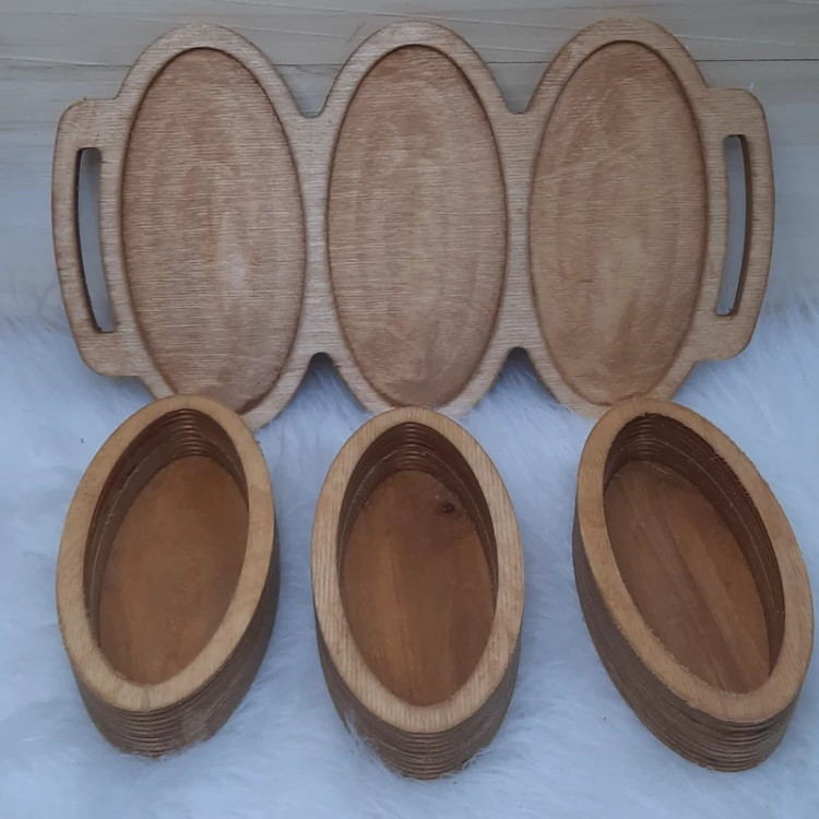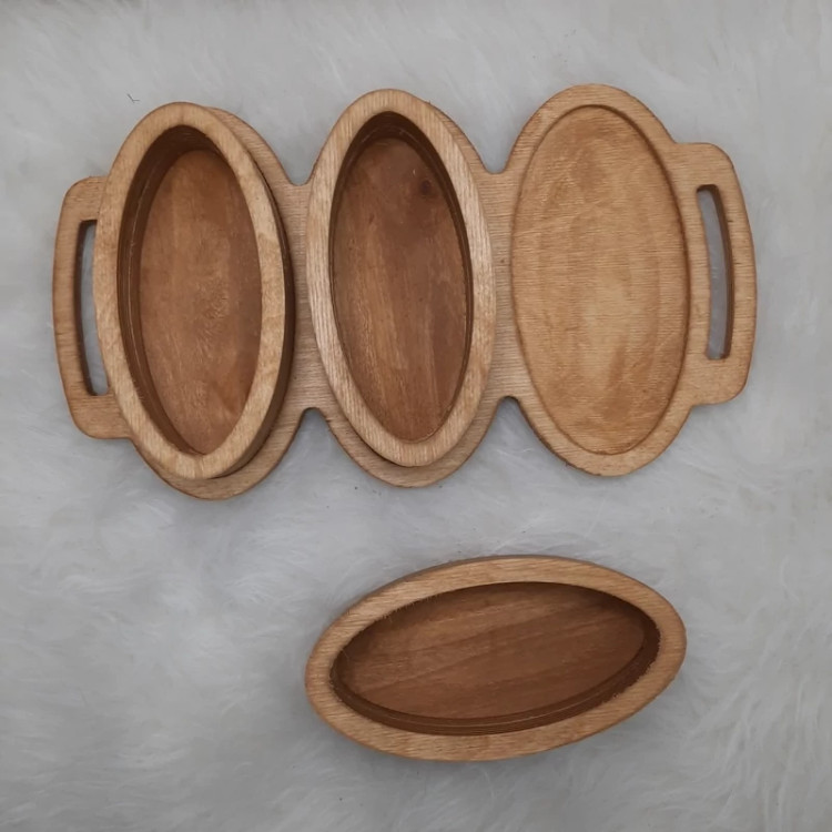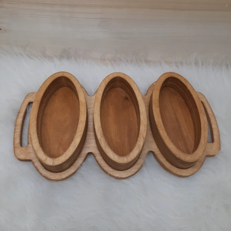 تنقلات خوری چوبی سه خانه طرح بیضی کاملاً ضد آب قابل شستشو جنس چوب پلای وود روغن کاری شده باروغن خوراکی ابعاد32/19 سایر مدلهای تنقلات خوری و اردوخوری داخل غرفه دکوشاین موجود است در صورت نیاز بازدید نمایید ارسال سریع با بهترین بستهبندی