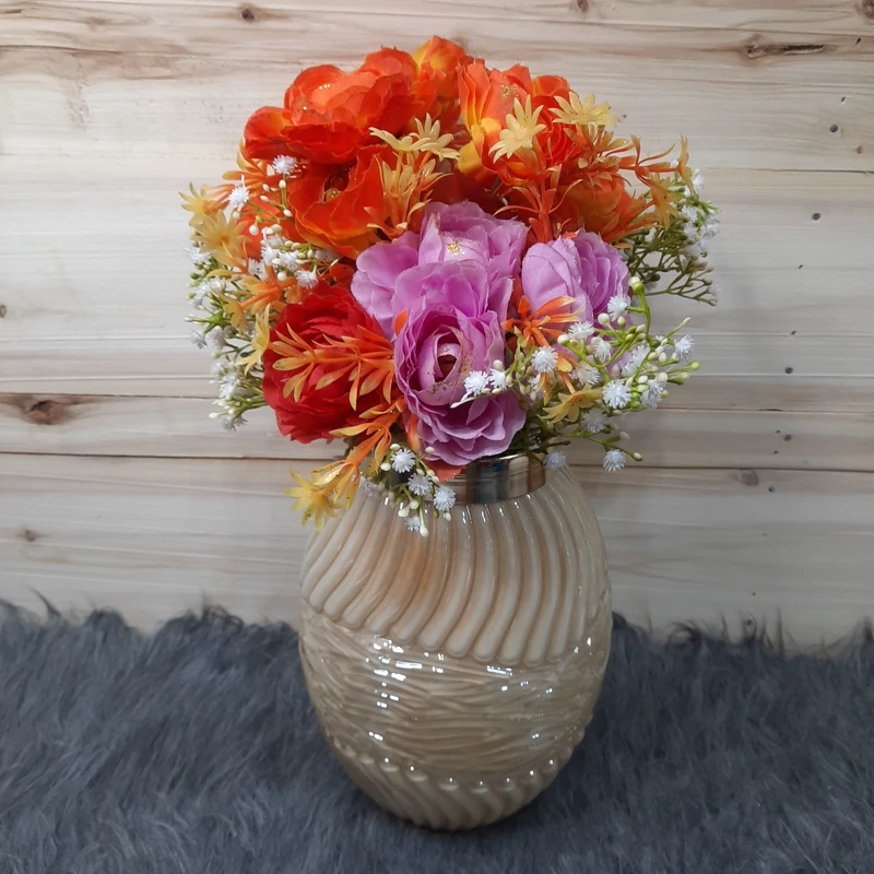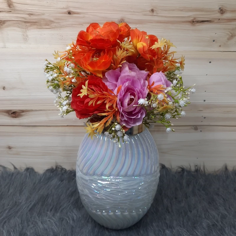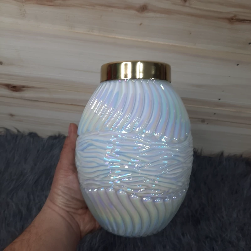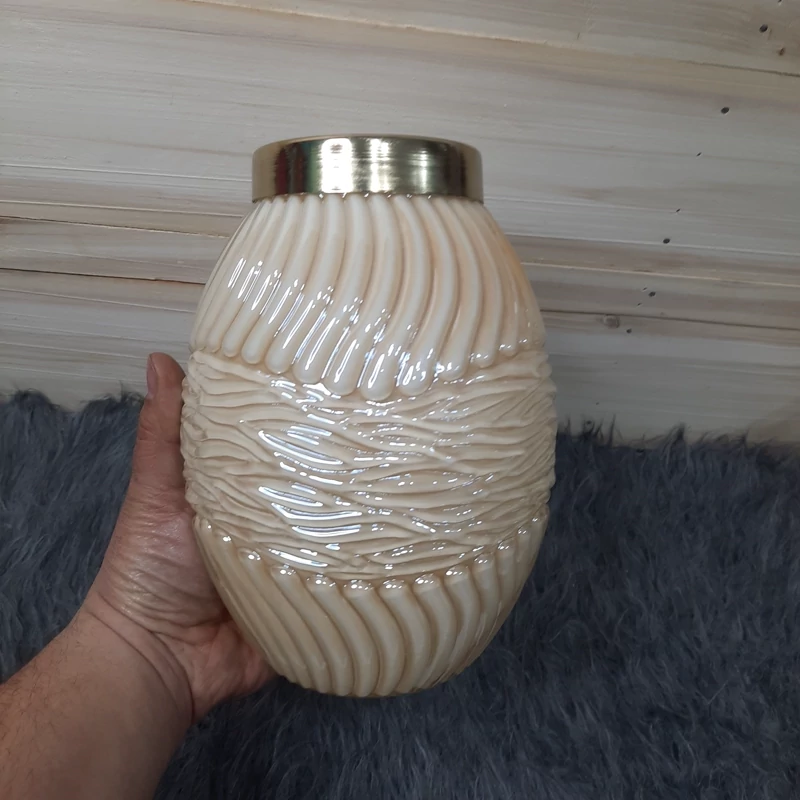 گلدان شیشه ای طرحدار رزیتا جنس شیشه طرحدار بالبه فلزی آبکاری شده موجود در دورنگ طبق تصویر ارسال سریع با بهترین بسته بندی