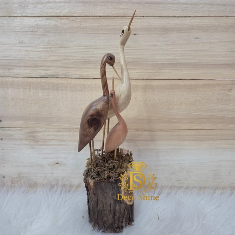 مجسمه چوبی لک لک سه تایی 40 سانت کار دست(پسکرایه)