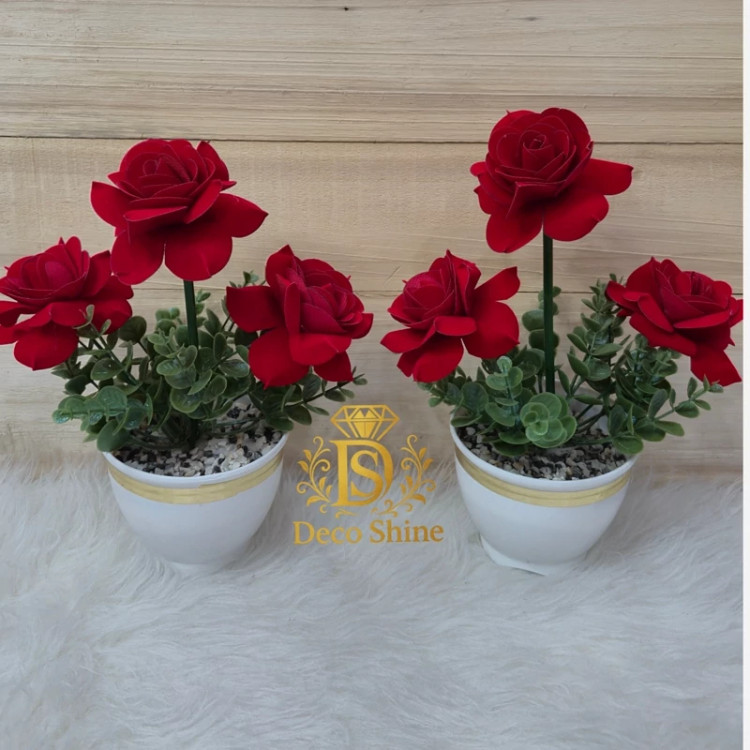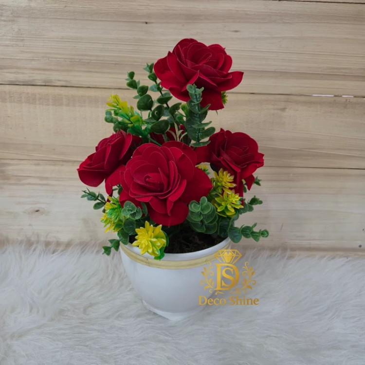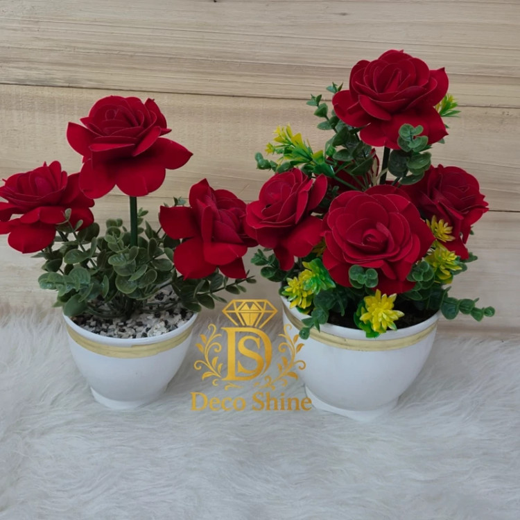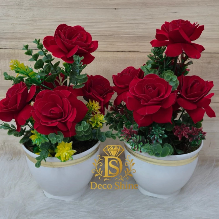 گلدانش هم از جنس پلاستیک فشرده و مقاومه که طراحی ساده ولی شیکی داره و باعث میشه ترکیبش با گلهای قرمز فوقالعاده چشمنواز بشه ❤️