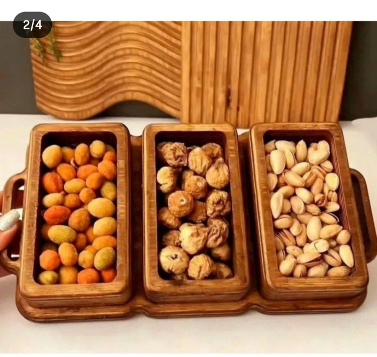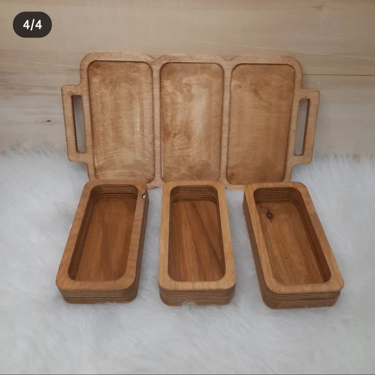 محصول تنقلات خوری سه تیکه سینی دار چوبی طرح مستطیل