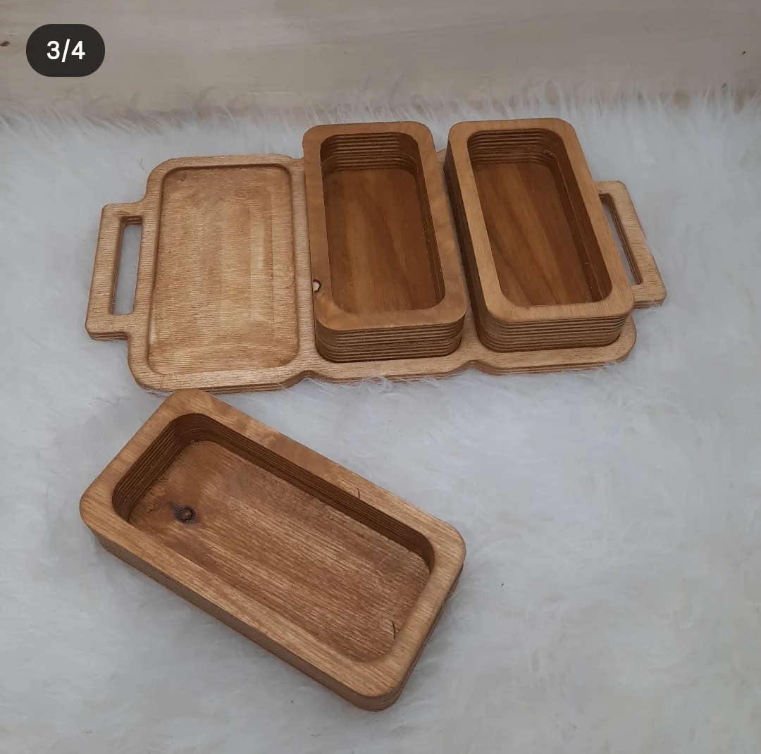 محصول تنقلات خوری سه تیکه سینی دار چوبی طرح مستطیل