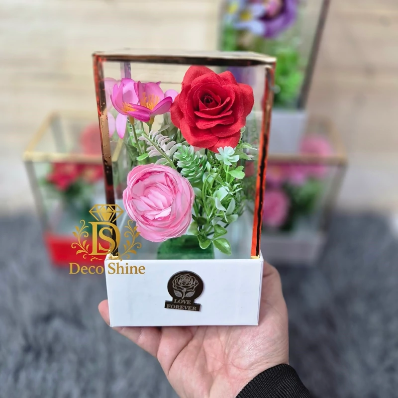🌸✨ باکس گل شیشهای پرکار | دو گله ✨🌸