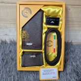 ست هدیه مردانه شامل کیف پول، کمربند و جاکارتی، انتخابی شیک و کاربردی برای آقایان خوشسلیقه است. این ست از چرم مصنوعی با کیفیت بالا تولید شده که علاوه بر ظاهر زیبا، دوام مناسبی برای استفاده روزمره دارد.