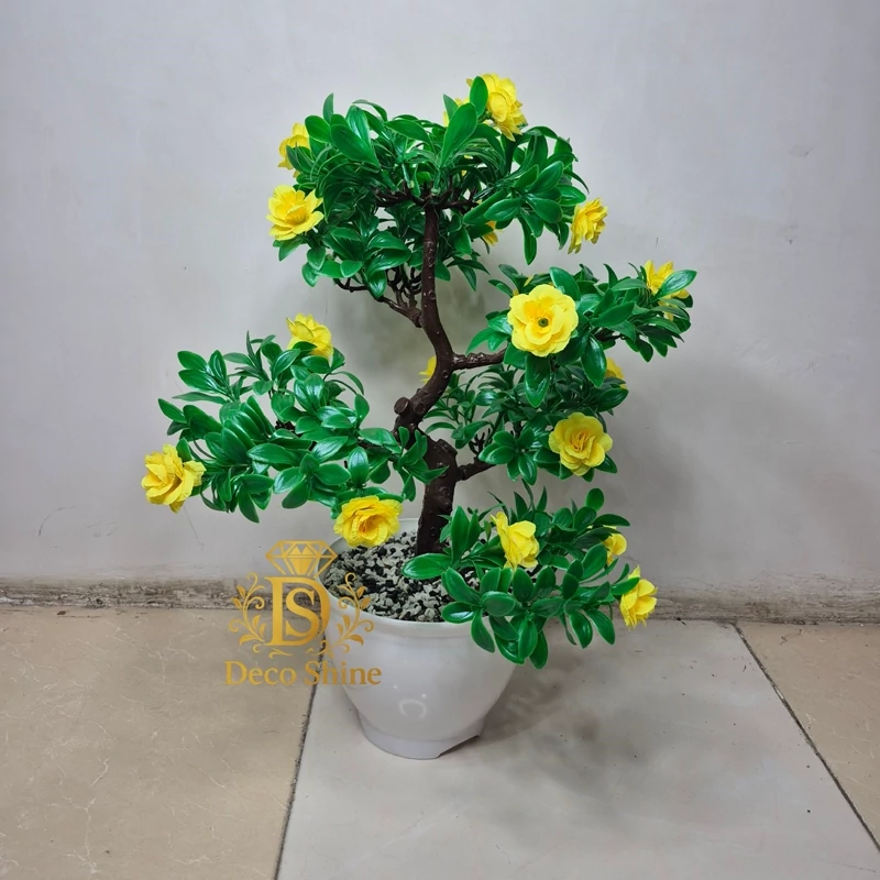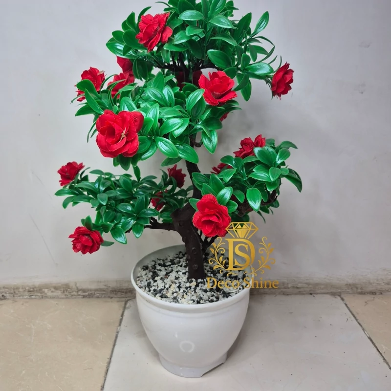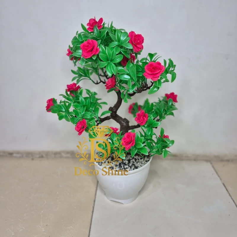 گل مصنوعی درختچه مصنوعی طرح بنسای بسیار زیبا و دلنواز موجود در 4 رنگ جنس گلدان پلاستیک ارتفاع 55 سانت مناسب دکور،کنارسالن ،اتاق،محل کار،هدیه و... ارسال سریع بابهترین بسته بندی