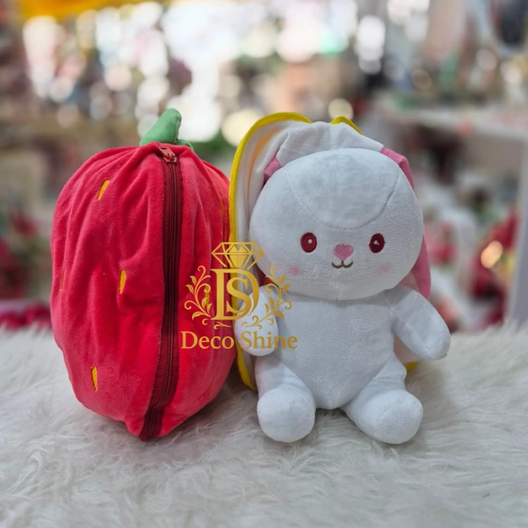 این عروسک موقع بستن زیپ تبدیل به توت فرنگی و موقع باز کردن زیپ تبدیل به خرگوش میشود