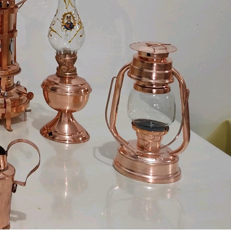 فانوس آبکاری مسی و برنجی و نقره ای دارای شمع درسه رنگ طلایی مسی و نقره ای مناسب (پس کرایه)