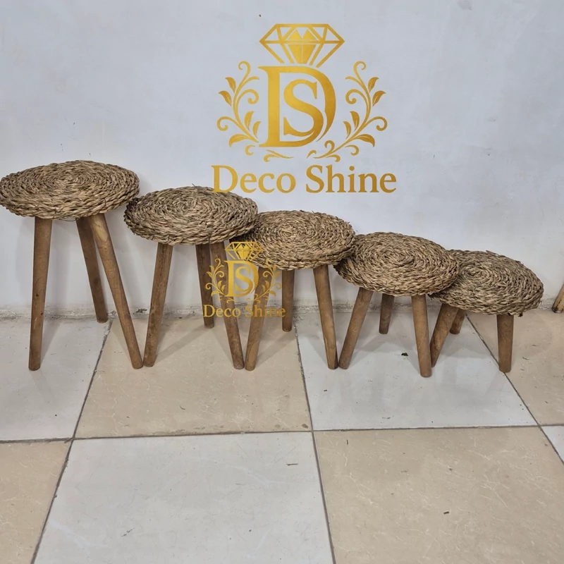 استند گل پایه گلدان حصیری پایه دکوری پنج تیکه جدیدکنار سالنی مناسب برای گل و دکوریجات(پسکرایه)