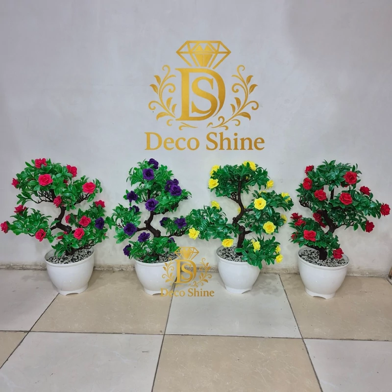 گل و گلدان مصنوعی درختچه مصنوعی بنسای مصنوعی رنگبندی (پسکرایه)